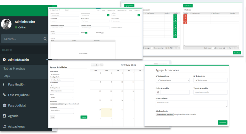 Permite gestionar el proceso de impago de una entidad bancaria internacional, desde el momento del impago hasta el proceso judicial.